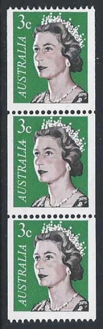 1966 3c coil issue. "white spot to right of last A" variety. SG 404 var. UM