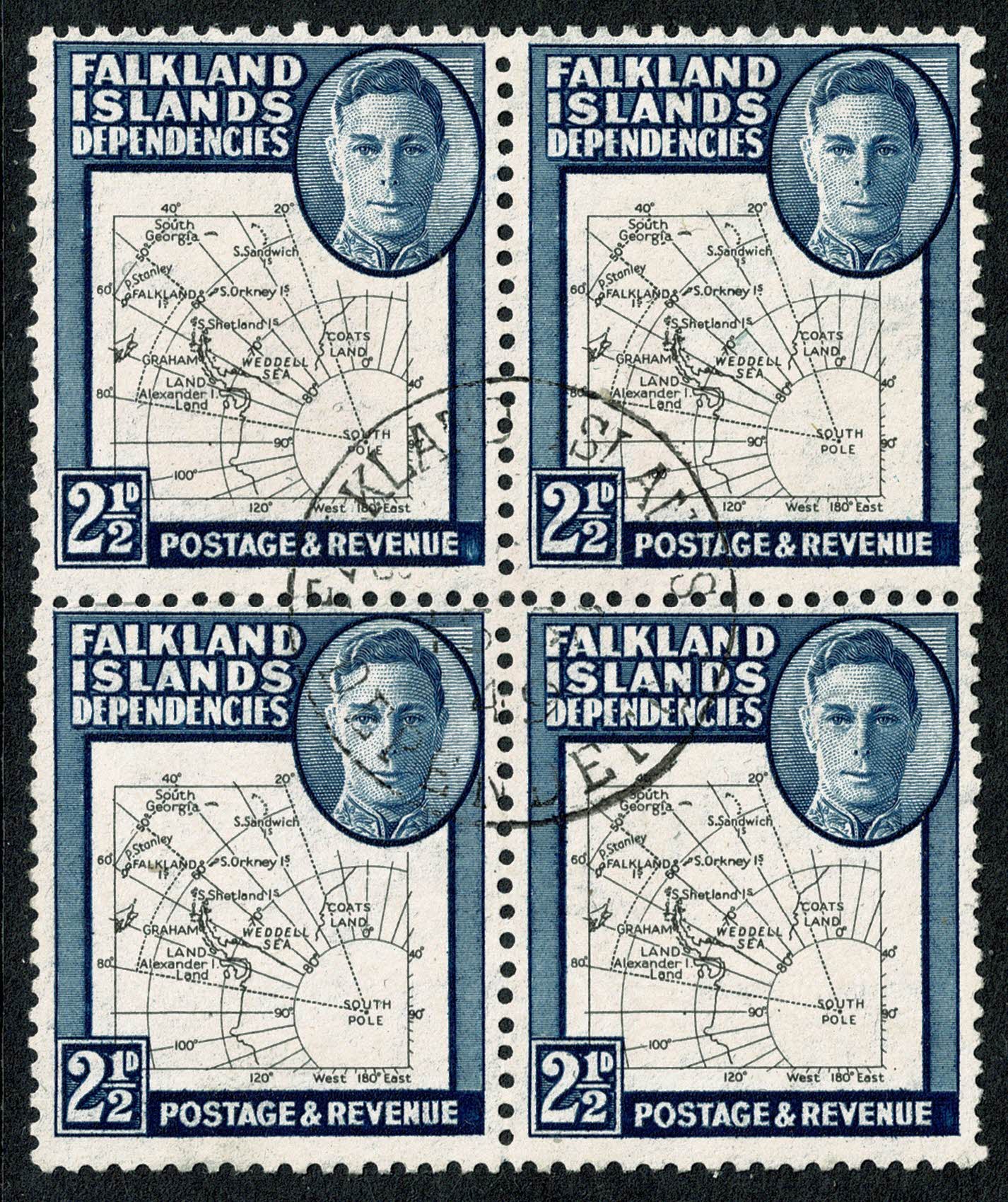 Falkland Island Dependencies. 1949 2½d black & deep blue. SG G11b. Fine Used block.