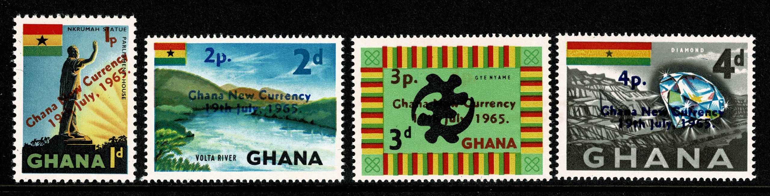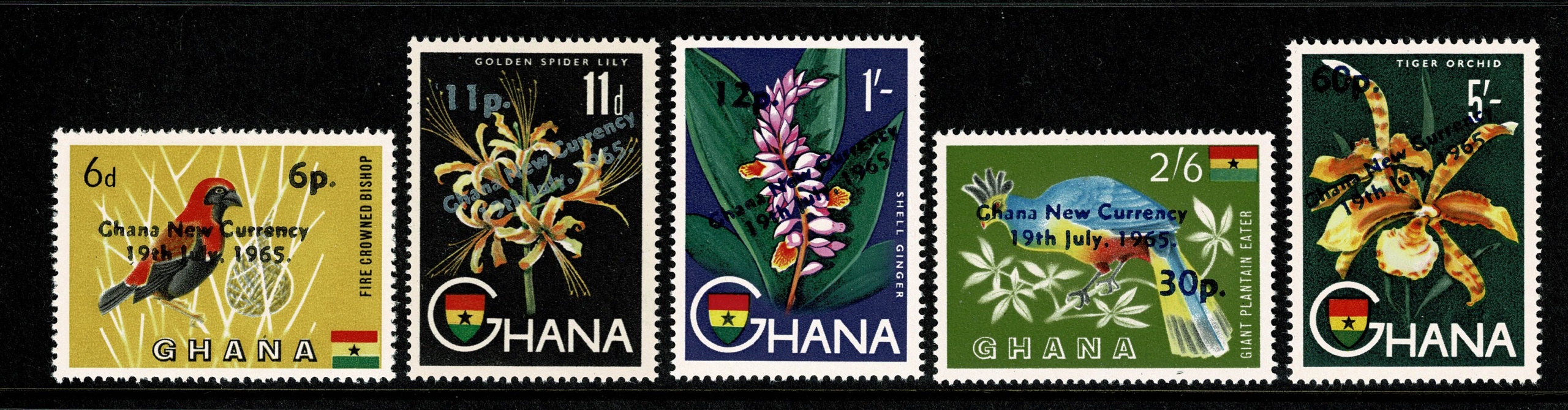 Ghana. 1965 Ghana New Currency optd set of 13 values. Unmounted Mint. SG 381-393