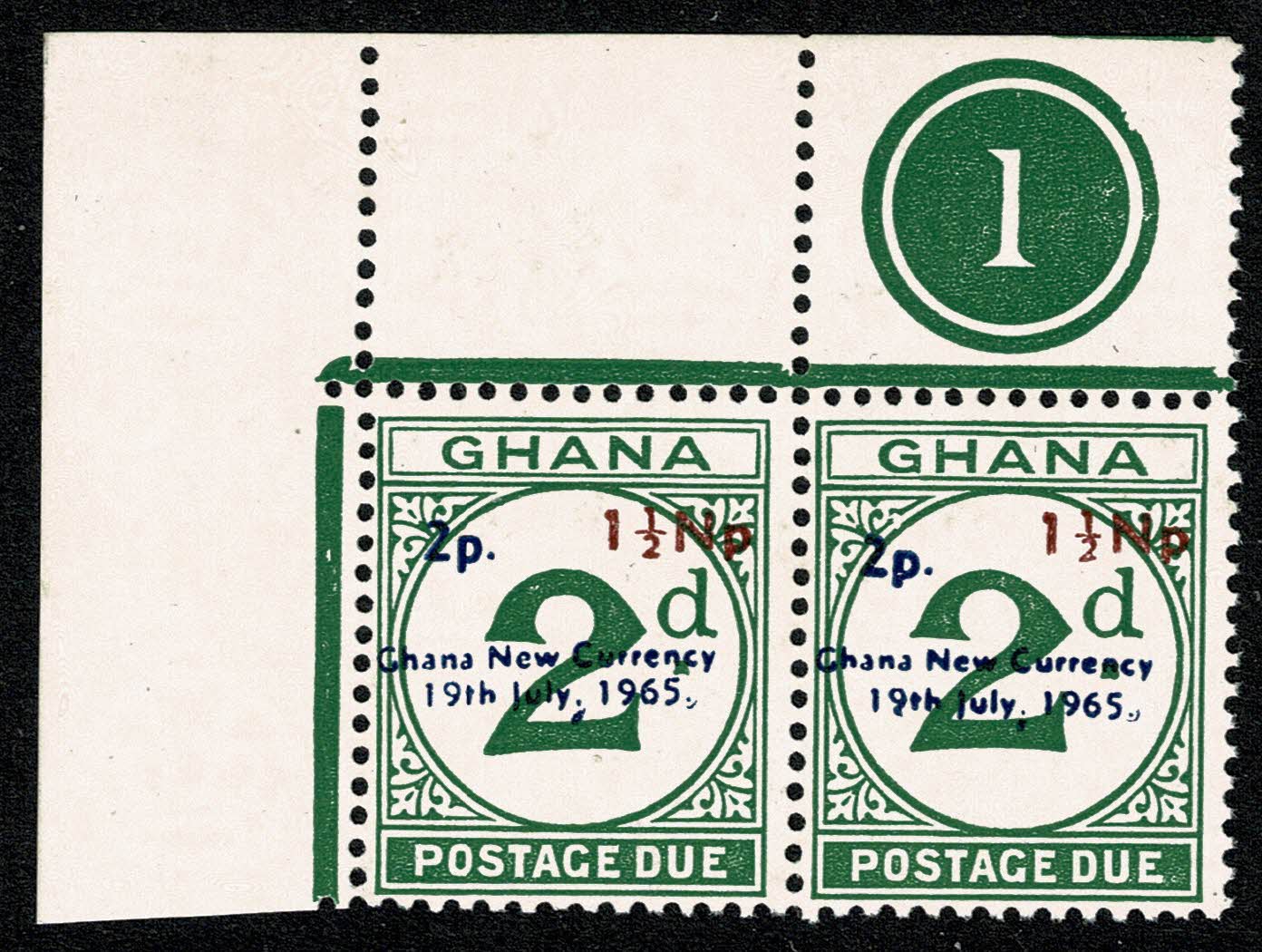 Ghana. 1968-70 Additional Surcharge 1½np on 2p on 2d Postage due Plate pair with "nick in frame" constant variety. SG D24 var