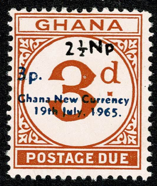 Ghana. 1968-70 Additional Surcharge 2½np on 3p on 3d Postage due. SG D25