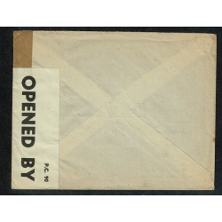 GB GVI 4d grey green SG 468 cancelled with 1943 BPO Tangier handstamp on airmail cover opened by censor. As illustrated. From 3rd June 1937 unoverprinted stamps of Great Britain were supplied to the Post Offices at Tangier and Tetuan as local stocks of overprinted MOROCCO AGENCIES were exhausted