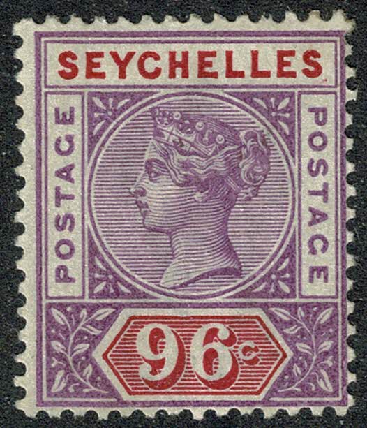 Seychelles. 1890 96c mauve & carmine SG 8. Lightly mounted mint.